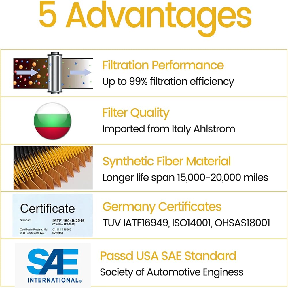 20,000-Mile Durability: The filter elements are made of Multiple-Layer media, for optimum debris and water removal, and have deeper, denser pleats and higher dirt holding capacity