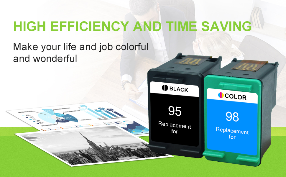 Printer Ink 95 98 Contents: 2 Pack of Remanufactured HP 95 98 Ink Cartridges Black/Color Combo Pack(1 x black,1 xTri-color).