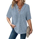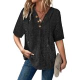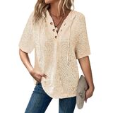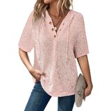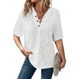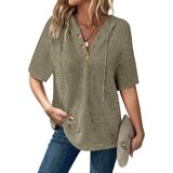 Design:Features short sleeves, a drawstring hood, V-neck pullover style, button front detail, drop-shoulder design, and an oversized fit with slight stretch. A trendy must-have piece for your 2026 summer wardrobe.