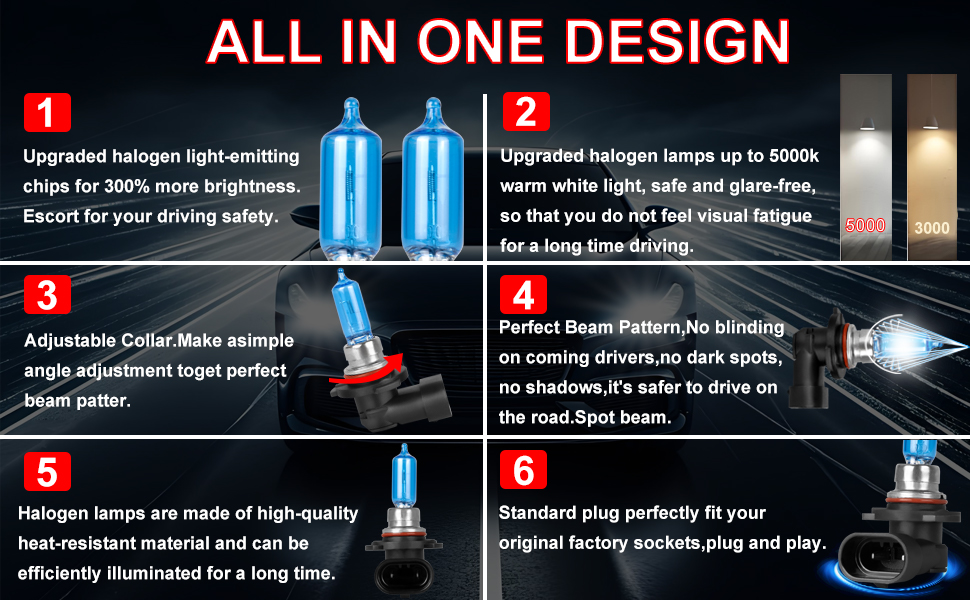 【QUICK 5-MINUTE INSTALLATION】Halogen bulbs and the original halogen light structure is the same, remove the original bulb to install it, plug and play without modification. Note: Do not twist the glass shade during installation
