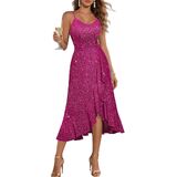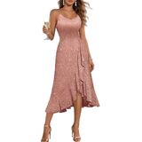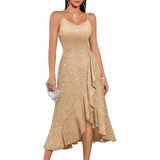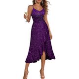 Sparkly Fabric: This formal wedding guest dress upgraded sparkly fabric uses a specialized soft-weaving technique that ensures sequins stay secure while remaining silky-soft against the skin. No itching, no shedding, just pure radiance.
