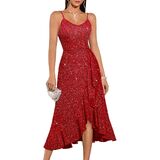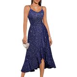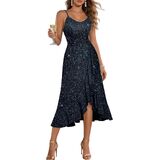 Cocktail Party Dress: The sparkly fit and flare dress features an A-line, high-waisted design that easily conceals the belly and elongates the legs. Its high-low hem with ruffles adds dimension, giving you a dynamic and charming appearance as you move Its "fit and flare" shape is universally flattering, providing a youthful yet sophisticated look for any identity.