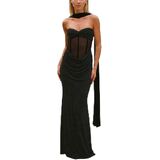 Design: Wedding guest dresses for women, strapless dress, sexy lace patchwork dress, pull on, see through. Fish bones have no supporting function, corset maxi dresses, solid color tube long dress