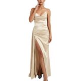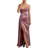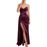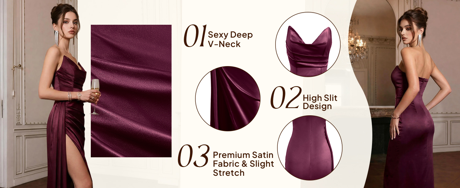 【Sexy Deep V-Neck & High Slit Design】: Features a plunging Deep V Neckline and backless detail for alluring charm. The dramatic High Slit on the side gracefully elongates the legs, allowing for elegant movement and a sophisticated, sexy look.