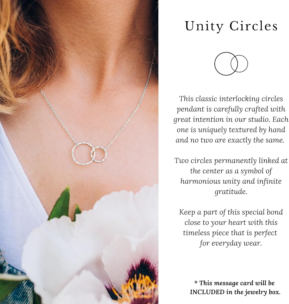 QUALITY MATERIALS: All components of this necklace for women are made with precious metal, to honor the special bond you shared. Choose from sterling silver or 14K gold vermeil. The necklace chain is 18” long with an adjustable loop at 16”. The double circle pendant measures .65” in height and 1” in width.
