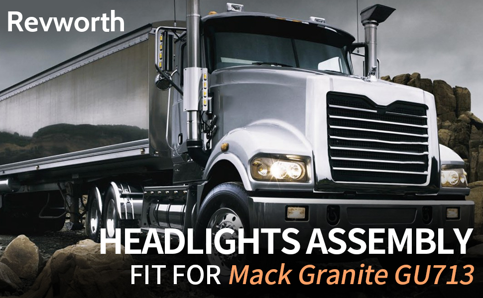 【Fitment】 Headlights assembly fit for Mack Granite/2012-2018 GU4/2012-2018 GU5/2008-2018 GU7/2008-2018 GU8. halogen bulbs Black house clear lens (The package does not include the bulbs. The partial packaging only contains test bulbs).