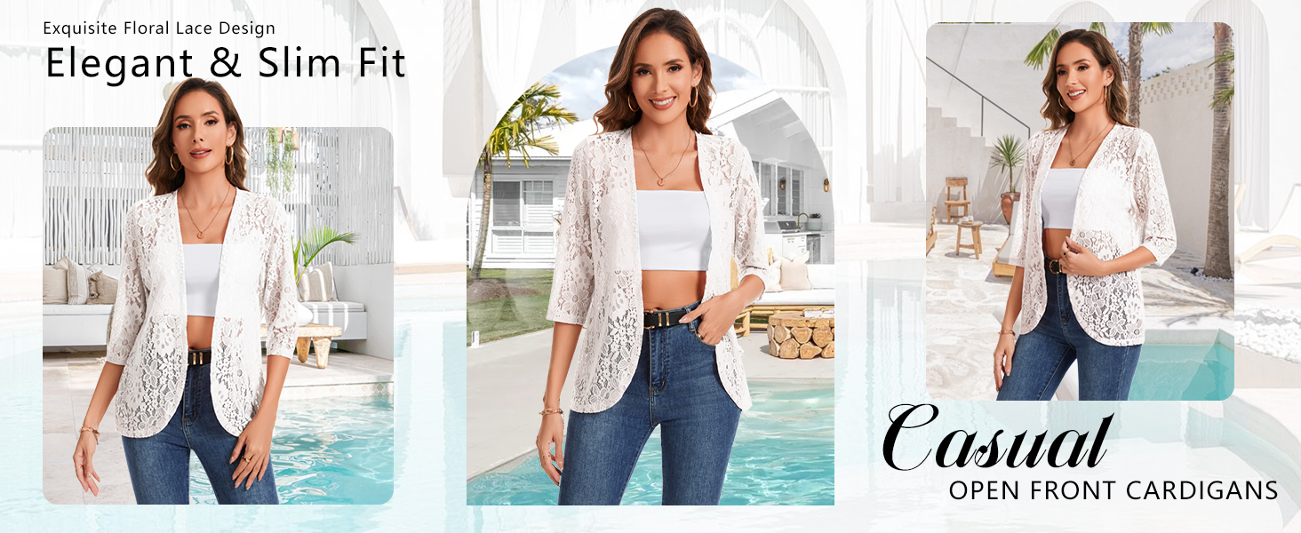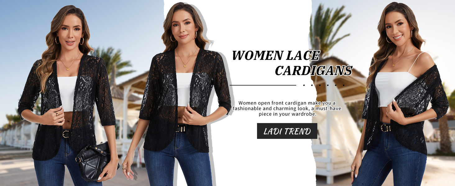 ✿FEATURE: LADI TREND lace cardigan for women features 3/4 sleeve, floral lace, collarless and open front. This women's casual cardigans are slim fit, ideal for spring, summer and fall.