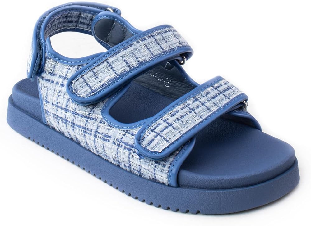 Features: Timeless double band design with adjustable hook and loop strap and slingback for flexible width, comfortable cushioned footbed, ultra light weight, easy slide on, anti-slip sole.