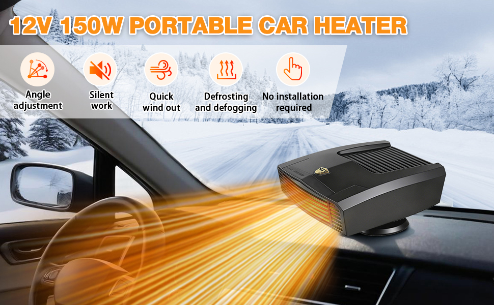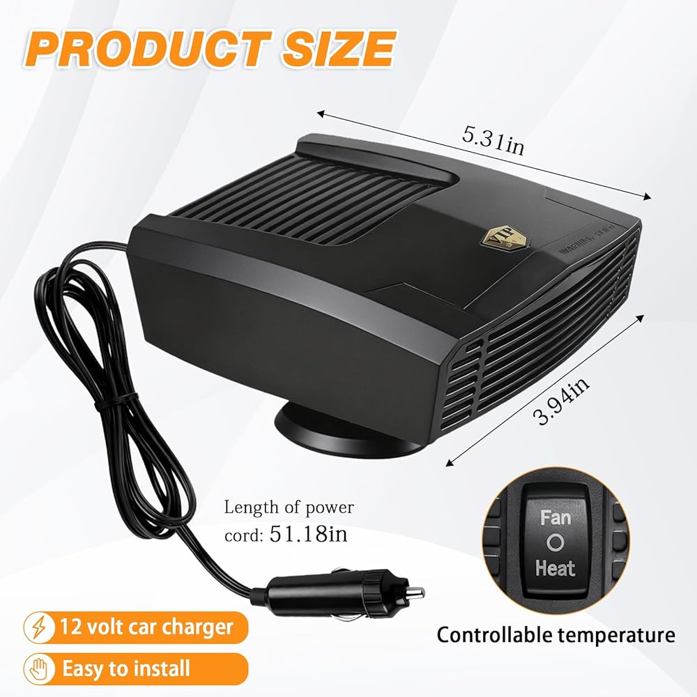 تسخين سريع، إزالة الجليد بشكل فوري: يقوم سخان السيارة بإزالة الصقيع والضباب والجليد من الزجاج الأمامي الخاص بك في ثوانٍ. مصمم للتدفئة السريعة، سخان السيارة يجعل القيادة أكثر أمانًا وراحة في الطقس البارد.