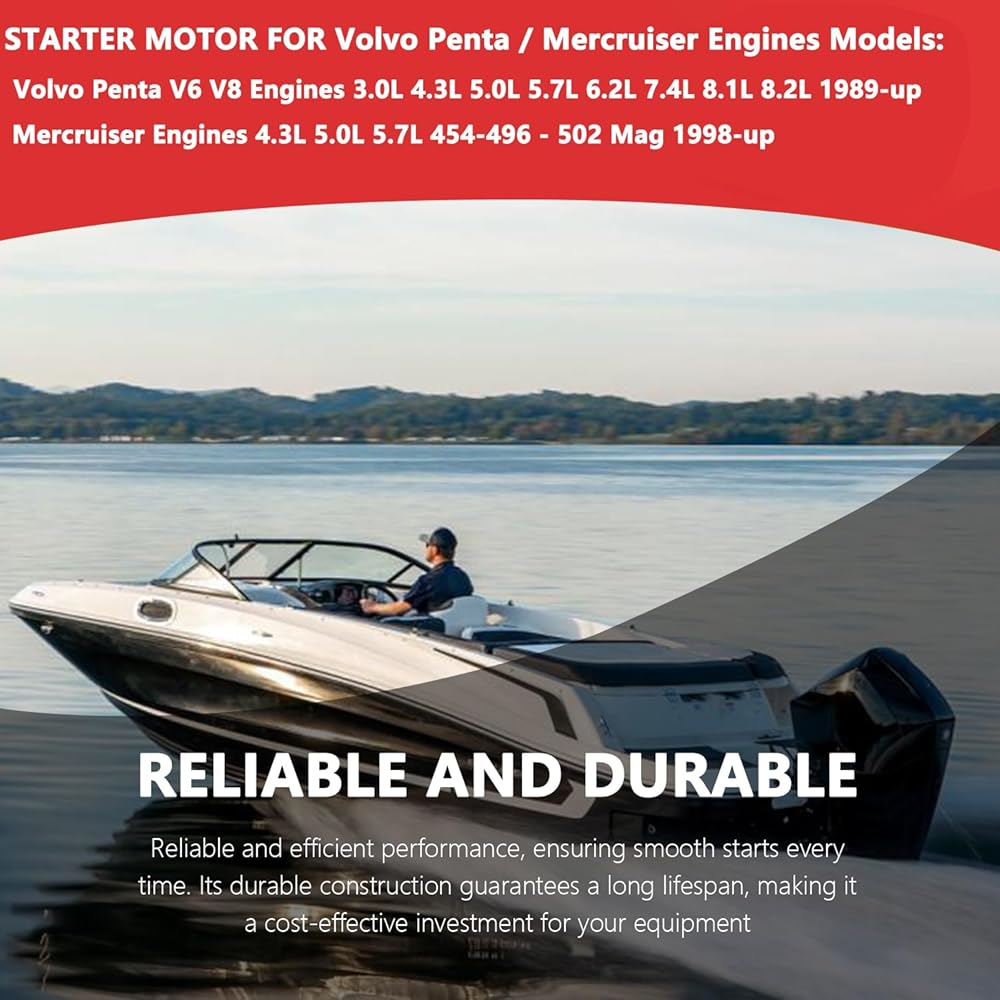 Starter Motor for Volvo Penta V6 V8 Engines 3.0L 4.3L 5.0L 5.7L 6.2L 7.4L 8.1L 8.2L 1989-up/Mercruiser Engines 4.3L 5.0L 5.7L 454-496 - 502 Mag 1998-up Replaces OE# 863007A1 3857747