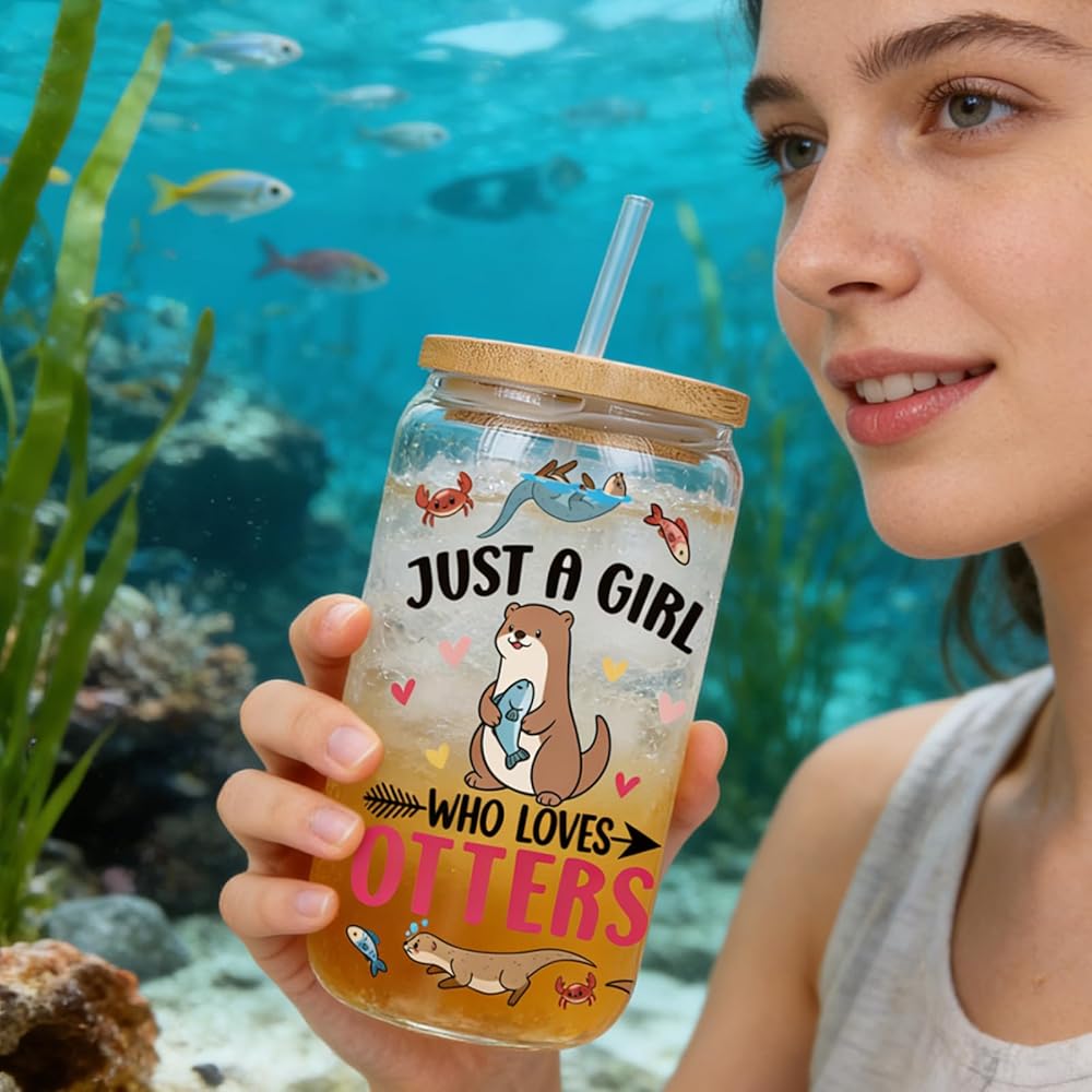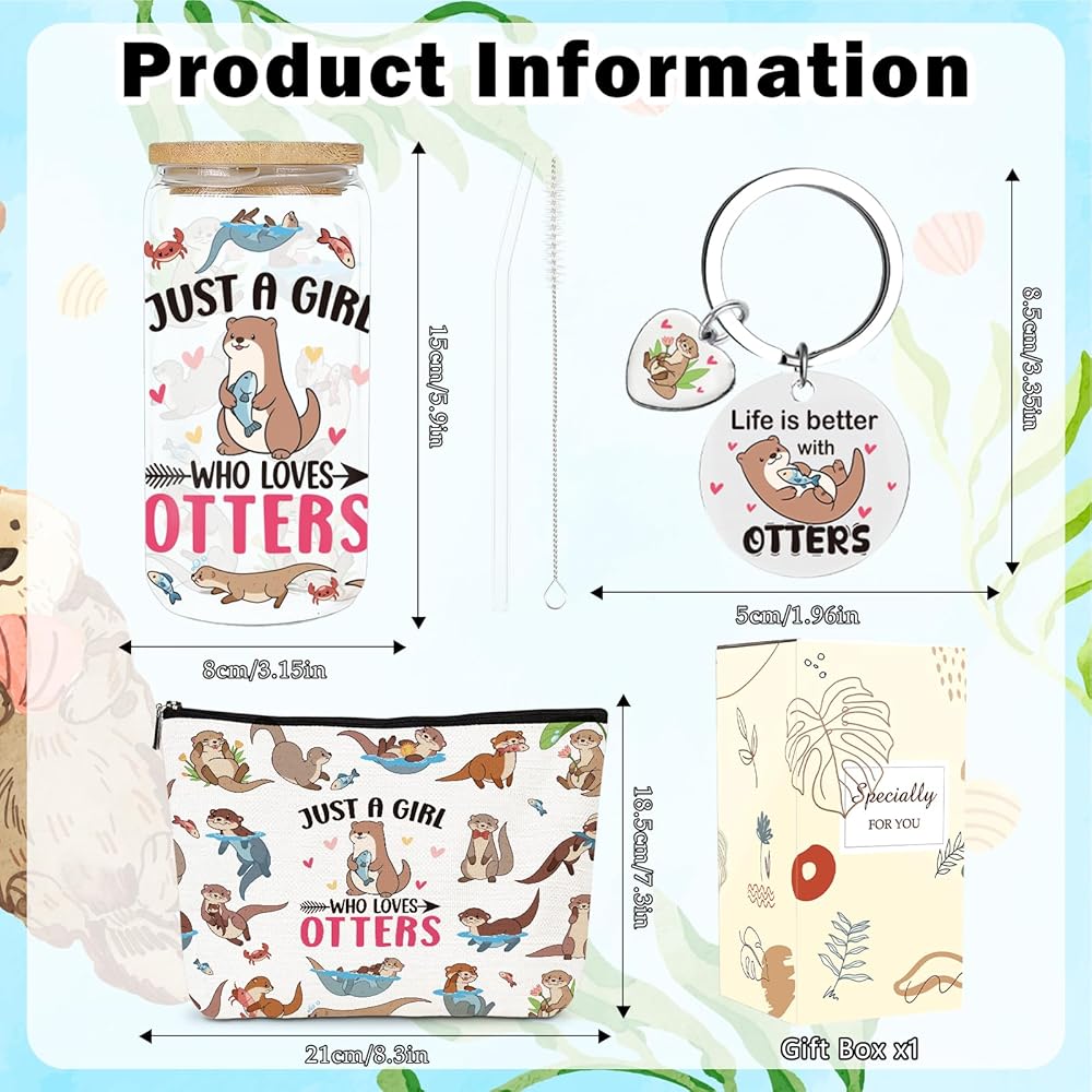 Otter Gifts for Women - 4 Pcs Sea Otters Themed Glass Mug Makeup Bag Keychain Gift Box, Christmas Birthday Holiday Festival Present for Otter Lovers Friends