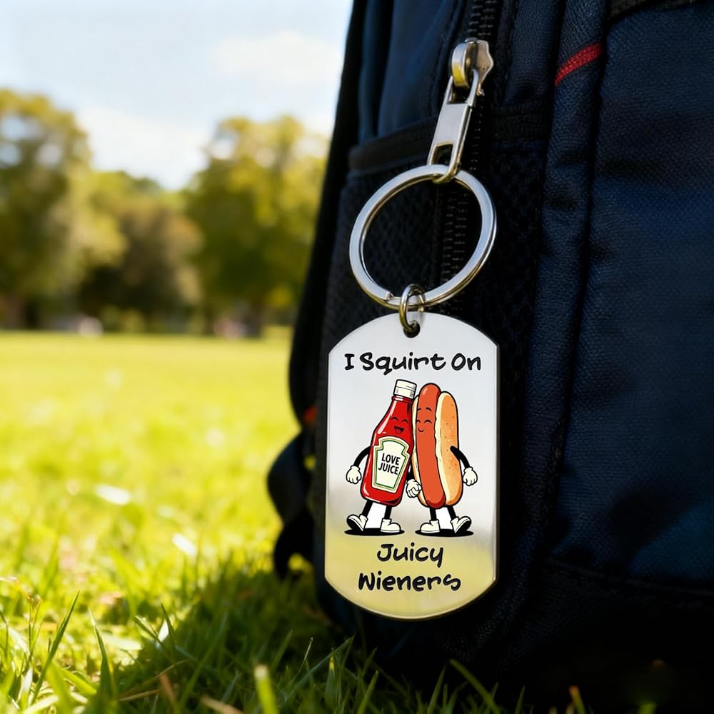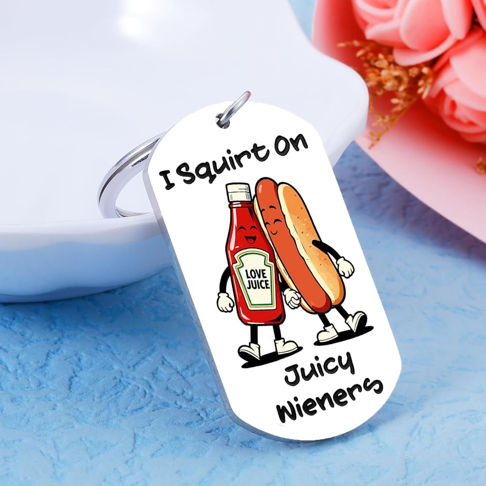 Funny Boyfriend Gifts:This funny keychain for boyfriend features a playful hot dog and ketchup design, perfect for adding humor to Valentine's Day Gifts for Him. A light-hearted surprise he won't forget—great for couples who enjoy flirty jokes and funny games. He'll love the bold, silly charm of this unique token