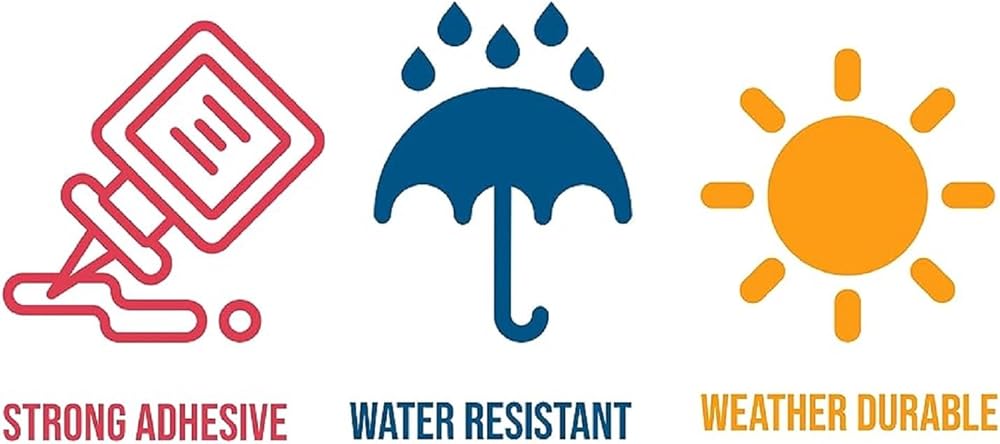 SPECIFICATIONS: Material: Vinyl Reusability: Single-Use Room Type: Outdoor, Indoor Installation Type: Self-Adhesive FEATURES: It is easy to apply and remove. Easy to remove and leaves no residue. Sun protection and waterproof adhesive that never fades. The sticker is made with high-quality vinyl and will last for years. Surface Recommendation: Window, Door