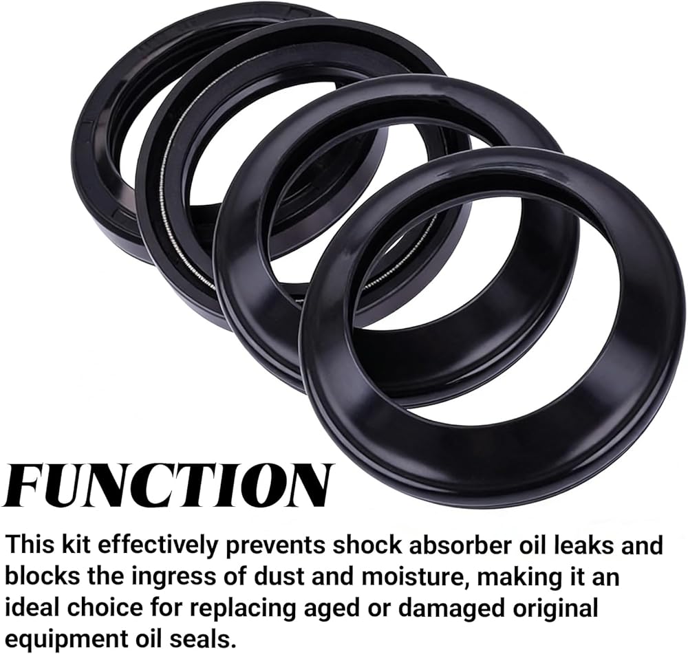 Packaging Details: This fork oil seal and dust wiper kit contains 4 pieces per set, including 2 high-quality oil seals and 2 matching dust/wiper seals. With ample quantity, it provides a complete solution for replacing worn or leaking oil seals on compatible motorcycle front forks.