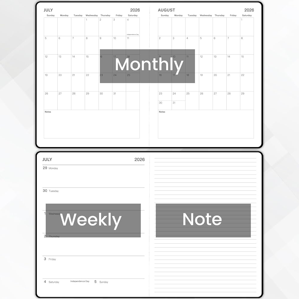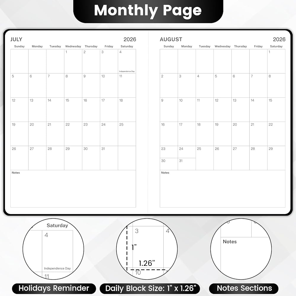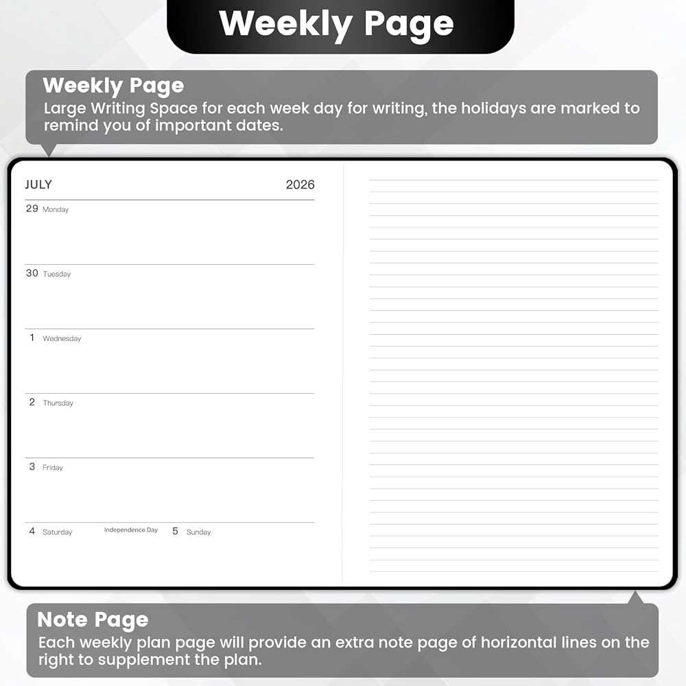 📆 Weekly View Pages - The weekly view in this academic planner 26-27 is from Monday to Sunday, and this 2026-2027 academic planner marks every date and major holidays for easily scheduling and planning. Besides, each weekly page offers ample lined writing space for you to write down your details planning.