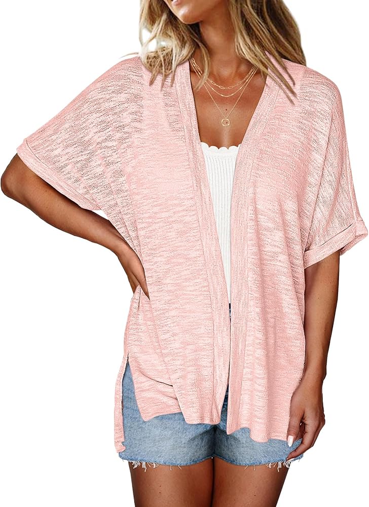 Feature: lightweight cardigans for women open front, rolled short sleeve cardigans for women loose fit, solid color, split hem on both sides, long enough to cover your butt, well-draped style makes this kimono cardigan flowy and ariy to wear.