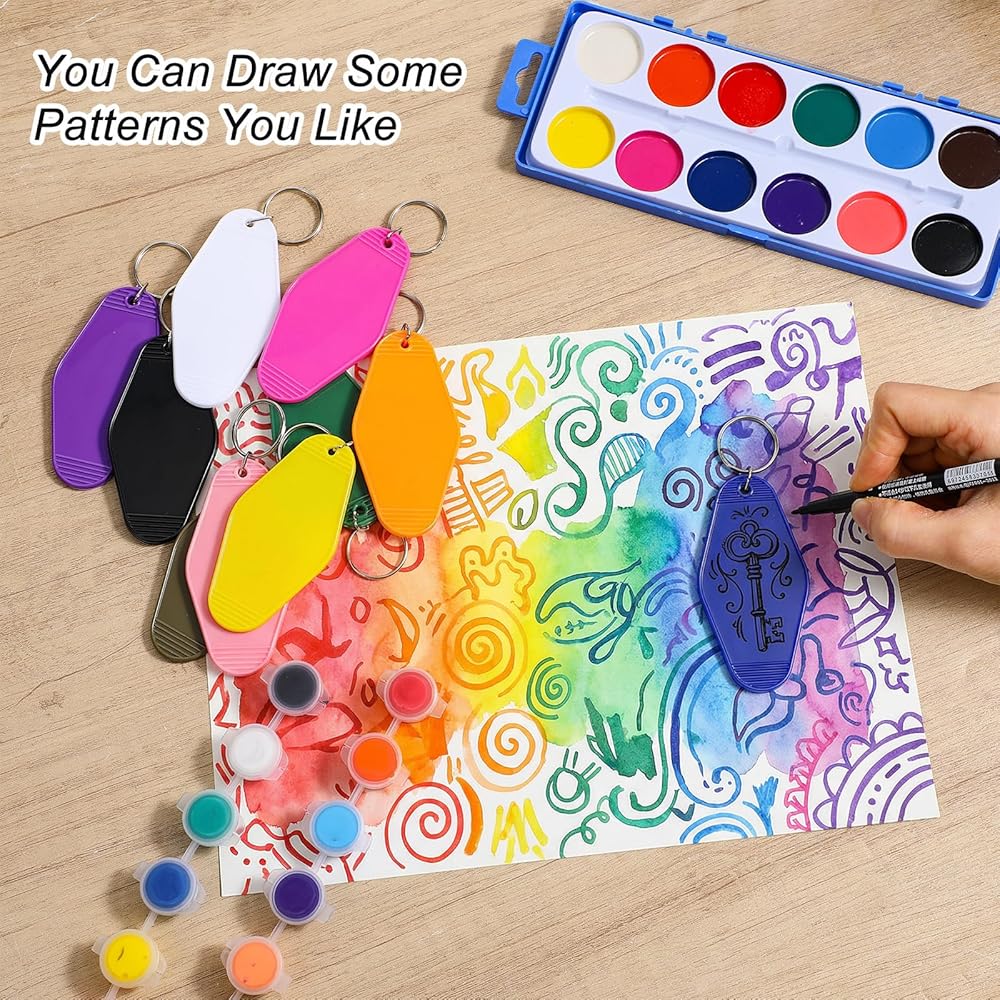 【Elegant Color Scheme】Blank motel keychain available in a vibrant palette of lemon yellow+orange+royal blue+pink+black+white+dark green+purple+rose red, these motel keychain blanks help in organizing keys by color, ensuring quick identification and adding a vibrant touch to your key collection