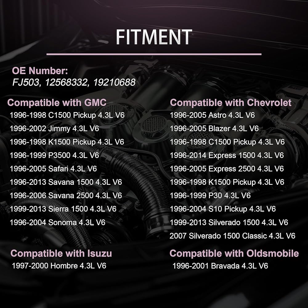 Fuel Injector fit for GMC Jimmy Safari Savana 1500 2500 Sierra Sonoma, fit for Chevrolet Astro Blazer C1500 K1500 Pickup Express 1500 2500 P30 S10 Pickup Silverado 1500 Classic, 4.3L V6 FJ503