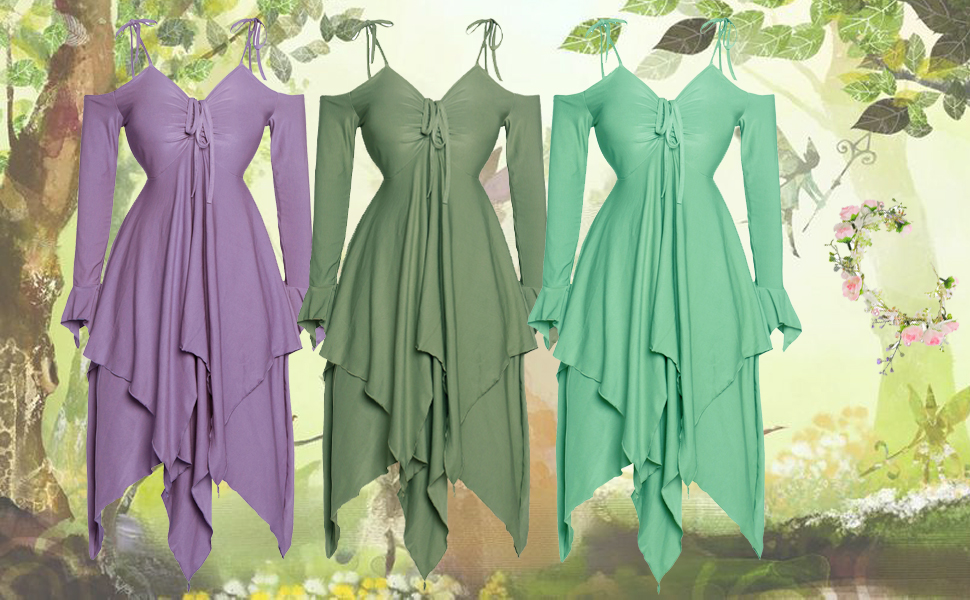 Quality Material - The renaissance fairy dress made from a high-quality milk silk fabric, the material is so soft, elastic yet quality, and the colors are beautiful.