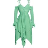 Embrace the Fairycore Fashion - A unique tiered skirt and handkerchief hemline that adds a whimsical touch to this dress. I would really recommend using a corset belt because it gives you more of a amazingly flattering silhouette.