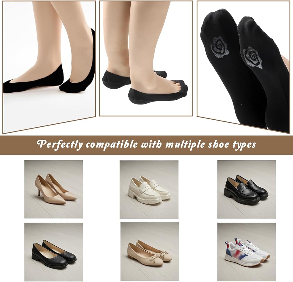 【Versatile Use】Designed for versatility, these no show socks womens pair effortlessly with ballet flats, loafers, sneakers, or low-cut heels. Ideal for daily wear, travel, workouts, or semi-formal occasions requiring discreet foot coverage.