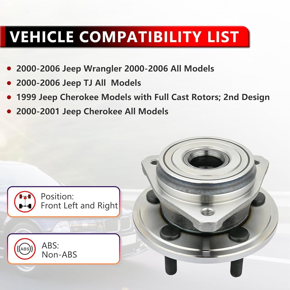 COMPATIBLITY- Front Wheel Bearing Hub For Jeep Wrangler 2000-2006 All Models; For Jeep TJ 2000-2006 All Models