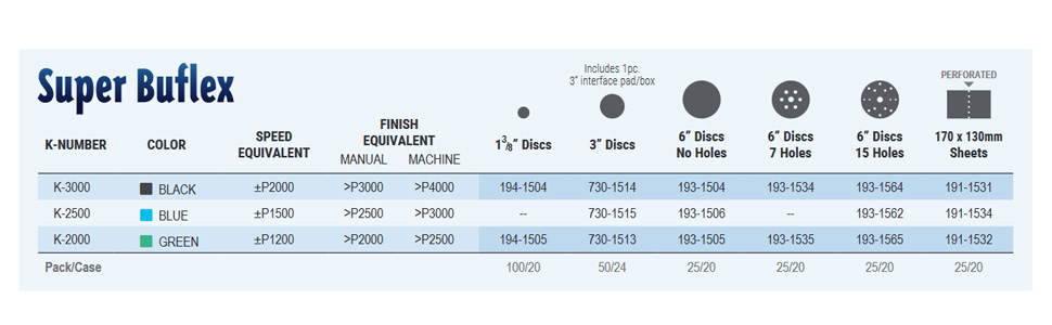 Super Buflex Flexible Polishing Sheets Starter Kit, SP19160, K2000 - K3000, 15 Sheets + 1 Interface Pad + 1 Hand Block