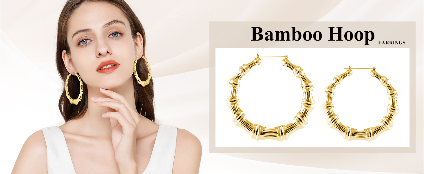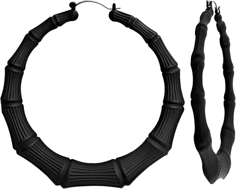 80 90's PARTY ACCESSORIES : celebrity's favorite Bamboo Hoop Earrings, wear it at Any occasion, especially stands out on a Party, make your look like a star.