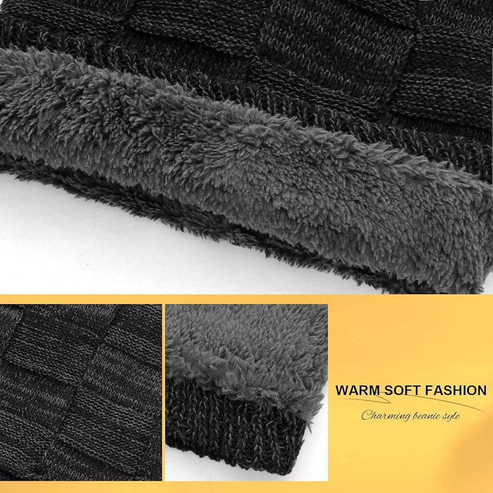 Slouchy Beanies Lightweight Warm Beanies Fleece Lined Hat Unisex Soft Cuffed Thick Knitted Winter Hat Stocking Cap for Men Women Gifts for Cold Weather Black