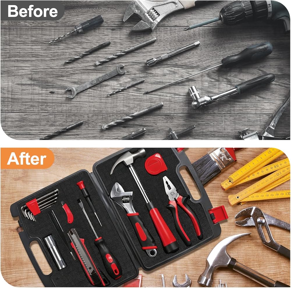 【Easy to Tear and Cut】The pick foam padding is designed with pre-cut grids, each grid size is: 0.6 IN*0.6 IN, no professional tools are needed; simply tear off the excess by hand to quickly create custom grooves for tools, crafts, electronic devices, and more. It closely conforms to the contours of items, preventing shifting and collisions during storage or transport, achieving neat and organized "one item, one place" storage.