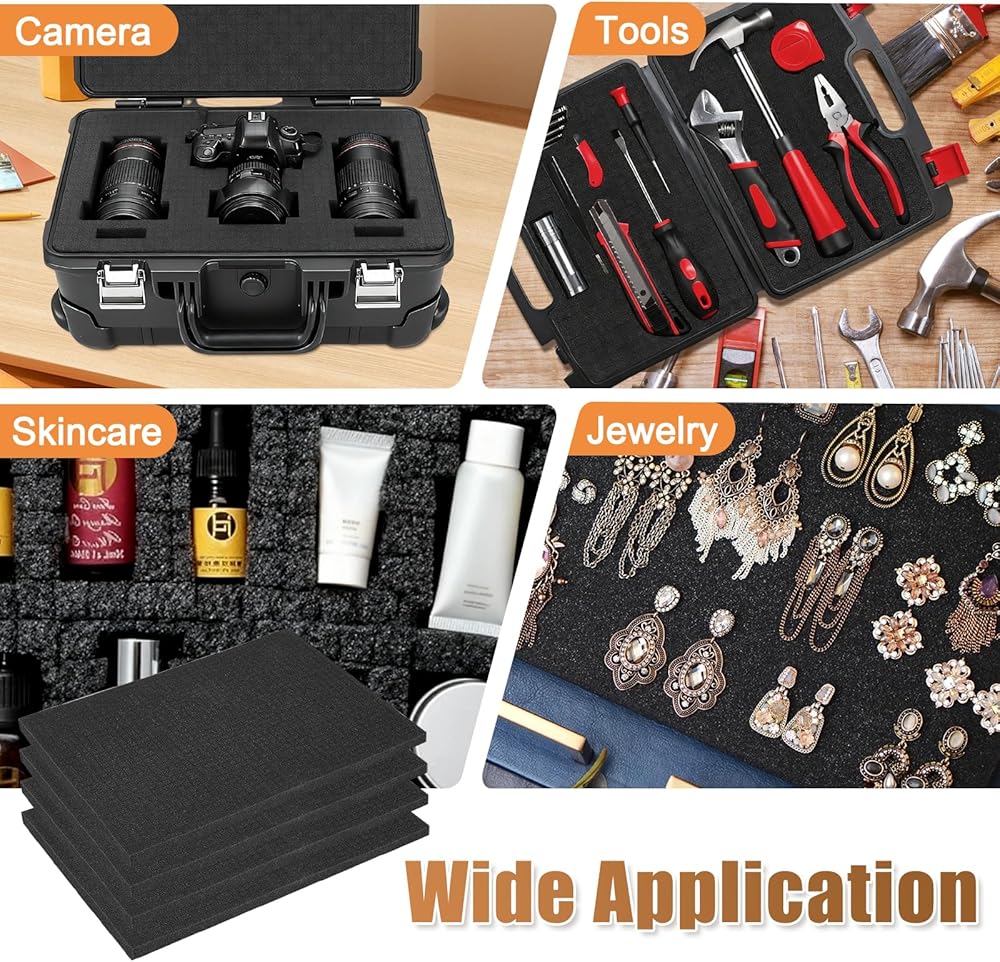 4 Pack Pick and Pluck Foam Inserts, 16 x 12 x 2 Inch Foam Sheets for Crafts, Toolboxes, Storage Drawer, Foams Padding Polyethylene Sheets, Closed Cell Foams, Home Storage Organizer