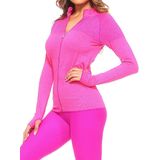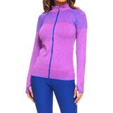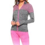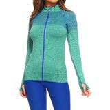 Obtain effortless athletic style in this seamless active wear performance jacket. Featured in various hues to customize your taste while maintaining functionality, this jacket is your new go-to for those long runs. Built in thumb holes keep your sleeves down and your arms warm. Netted style yoke adds a layer of comfort while you're working hard. Ribbed knit accent on the sides provide a better fit without restraining your workout.