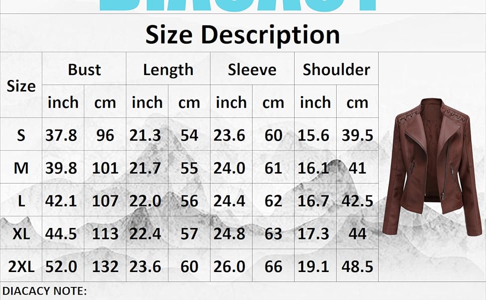 L Bust 42.1 inch= 107 cm,Sleeve 24.4 inch= 62 cm,Shoulder 16.7 inch= 42.5 cm,Length 22.0 inch= 56 cm