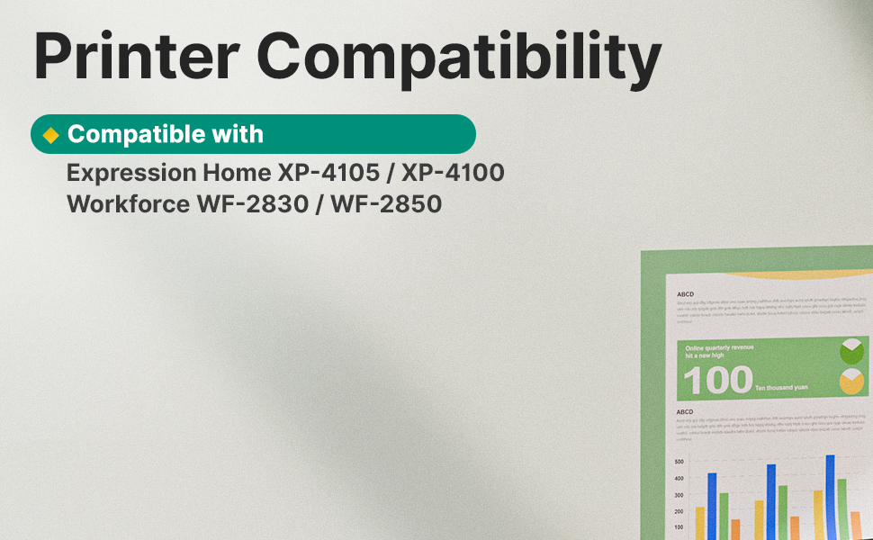 Printer Compatibility: Compatible for Epson Expression Home XP-4105 XP-4100 Workforce WF-2850 WF-2830 printers