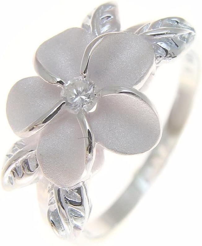 Sterling silver 925 Hawaiian 12mm plumeria flower maile leaf white cz ring size 1 to 11