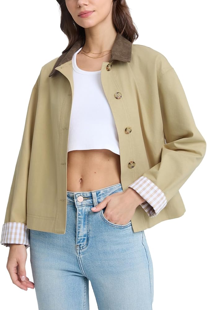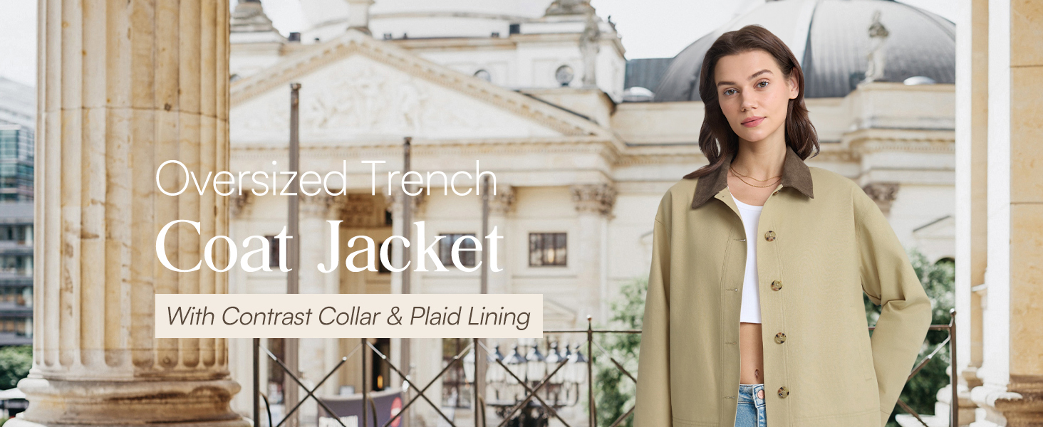 Stylish Contrast Collar & Plaid Lining:Features a chic contrast lapel collar and classic checkered lining that blend timeless trench coat details with contemporary fashion. The solid stone color adds versatility for both casual and polished looks.