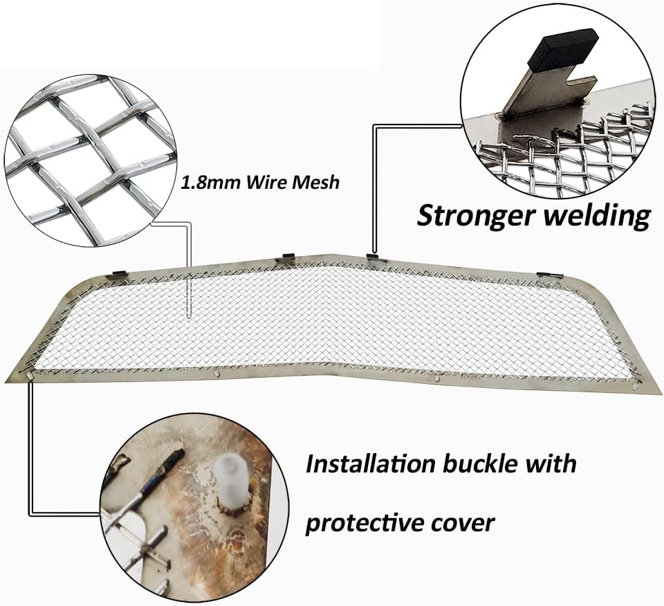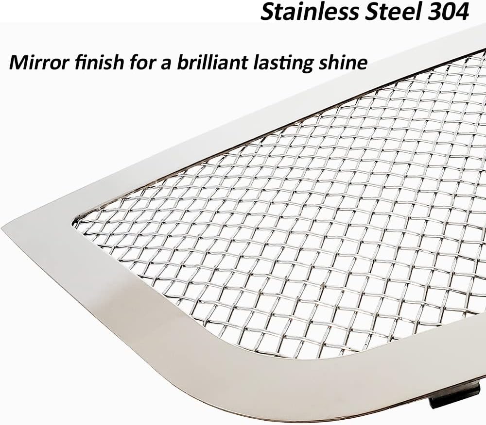AIR CRAFT GRADE:Triple chrome plated T-304 stainless steel wire woven mesh grille insert, super shiny last forever.CNC machine cut stainless steel frame .