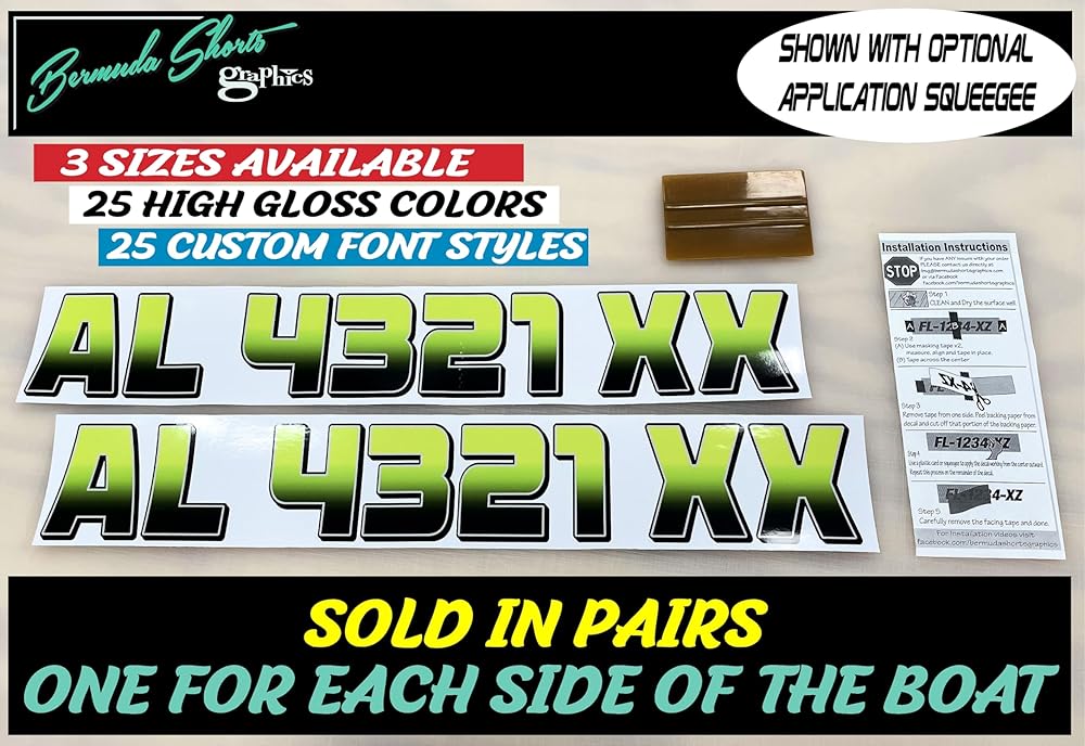 Custom Boat Registration Numbers & Letters (Two Decals) Vinyl Marine Hull ID Stickers X2 GR