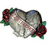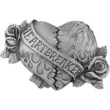 Heart-shaped belt buckle available in an antique finish, featuring a detailed heart design at the center, flanked by rose buds on both sides.
