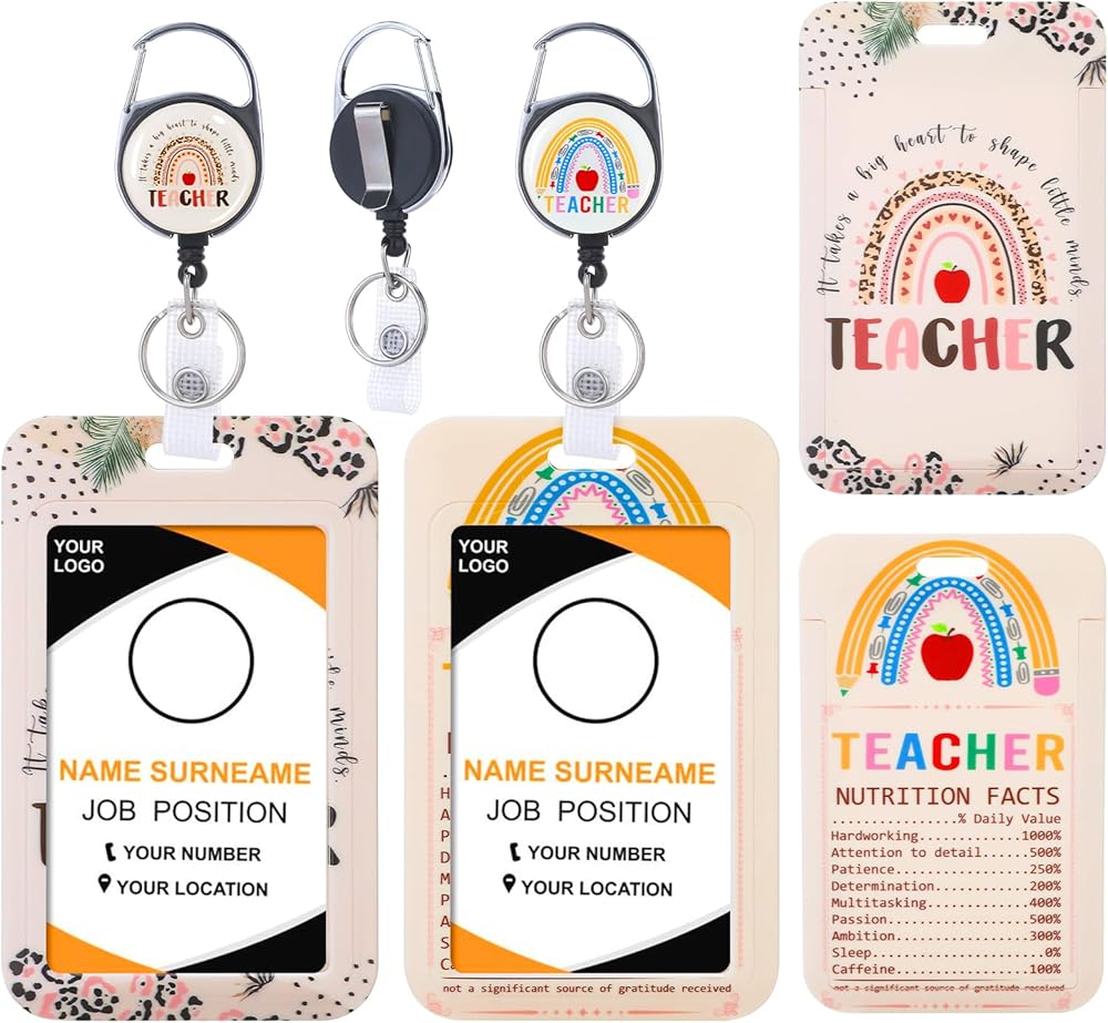 Package Included: The package you will receive includes 2 badge holder retractable clips and 2 teacher ID badge holder vertical card protector cover. Heavy duty ID badge holder seamlessly blend design, craftsmanship, practicality, and gifting potential