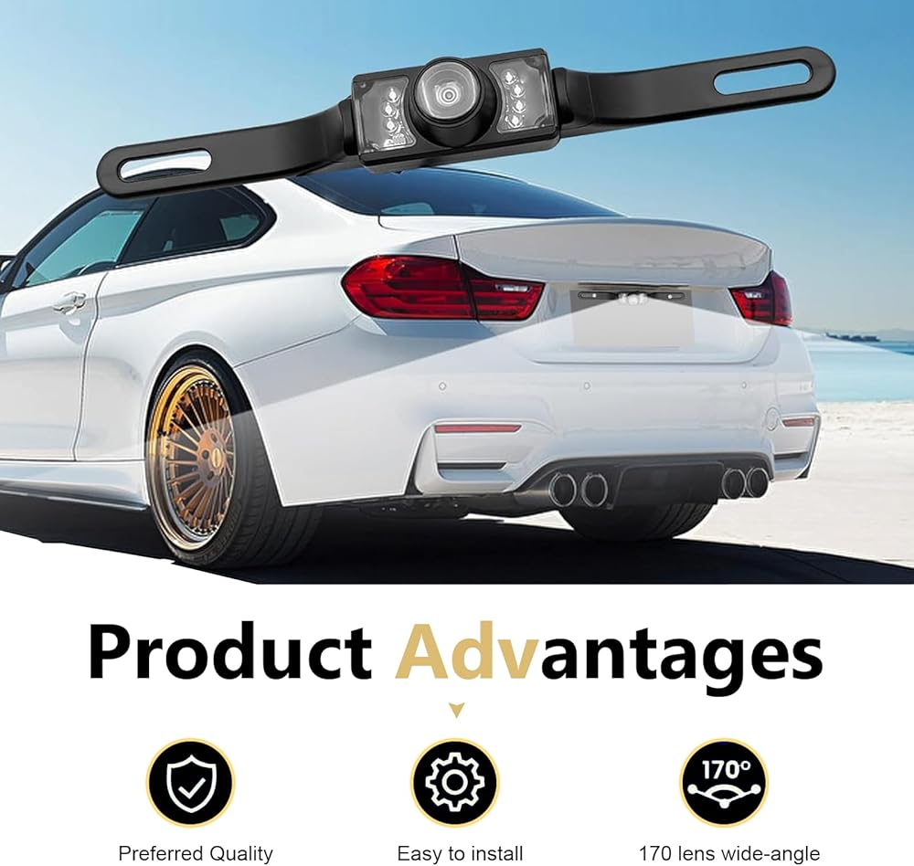 Universal Fit & Easy Install: Designed for license plate mounting without drilling. This car camera is compatible with most vehicles like sedans, SUVs, and MPVs.