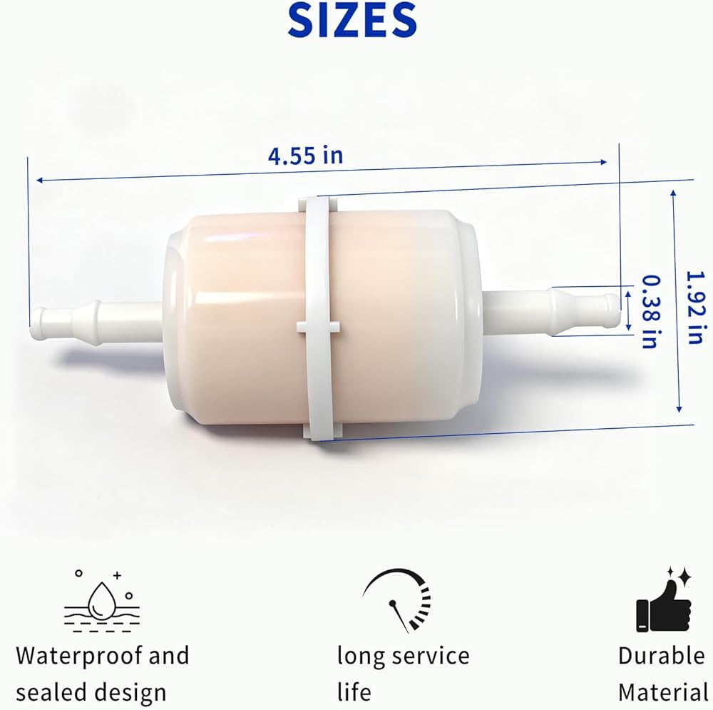 • fuel filter is a compatible replacement part for lawn mowers. By filtering out dirt, debris, and other contaminants from the fuel system, this filter helps extend engine life, reduce maintenance frequency, and ensure smooth, uninterrupted mowing performance—whether for residential or light commercial lawn care tasks