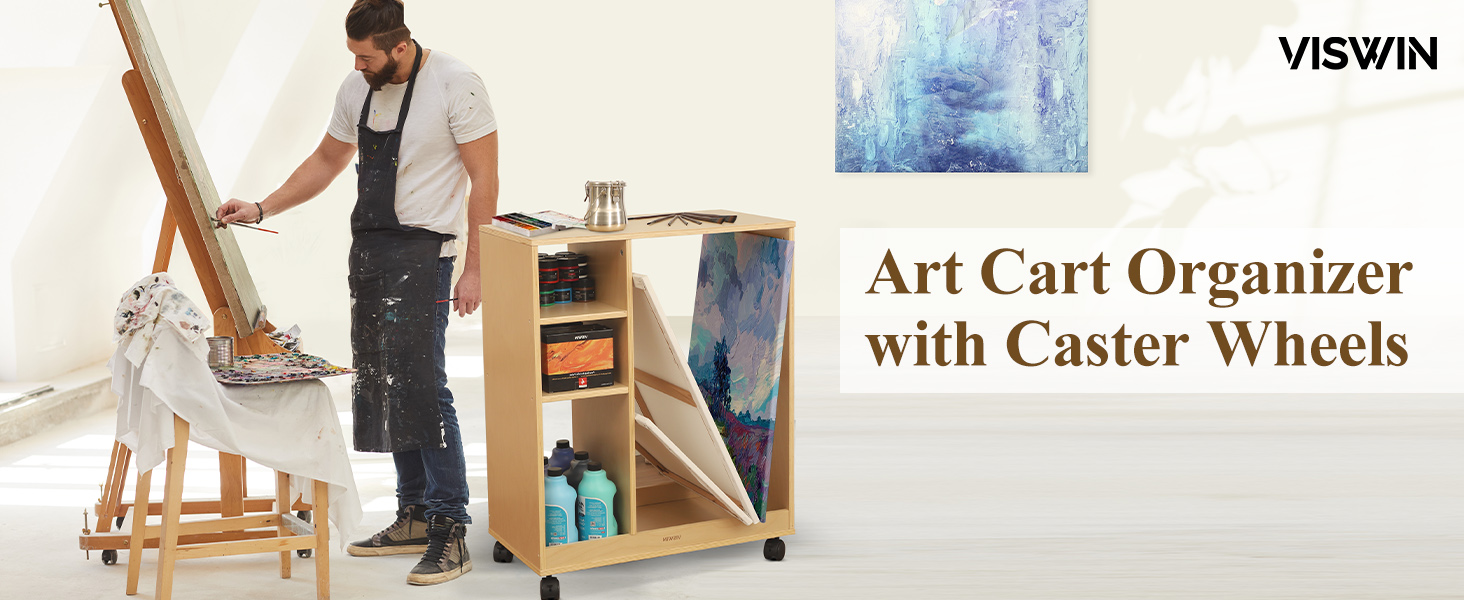 360° SWIVEL CASTER WHEELS: This art cart with wheels combines mobility and stability. You can move the cart anywhere you want. Whether you're in a studio, art classroom, office, or professional setting, it can offer convenience for your work. Two caster wheels are equipped with locking brakes to ensure safety and prevent slipping