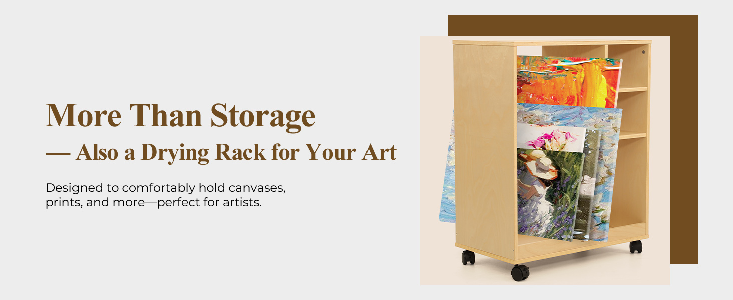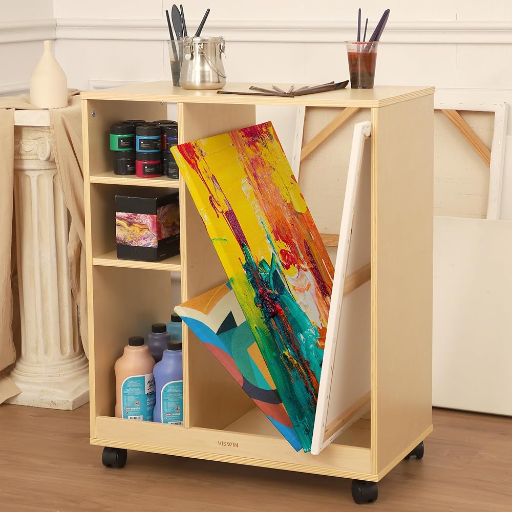 PRACTICAL & MINIMALISTIC DESIGN: Featuring three spacious tiers, this cart can be an essential addition to any art studio or workspace. The top shelf can also store brushes, palette knives, and other supplies, keeping everything neatly in place. It is a multifunctional storage cart for studio artists, art students, teachers, and art amateurs.