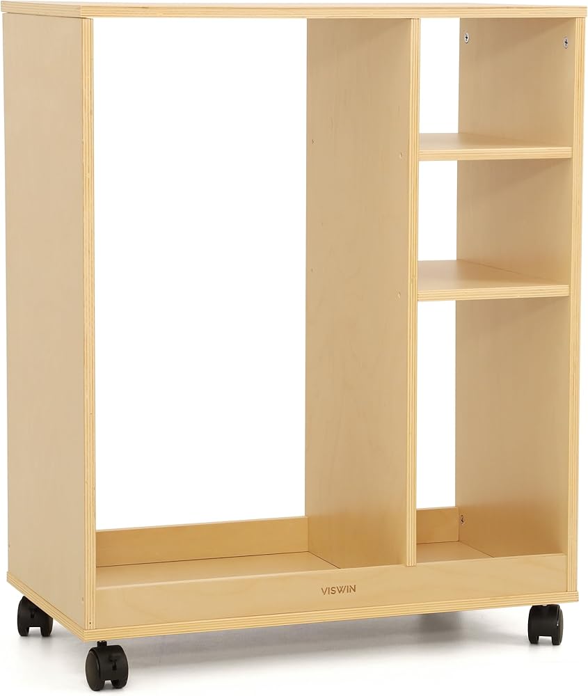 VISWIN Art Cart Organizer, Solid Pine Wood Art Supply Storage Organizer with Caster Wheels, 3-Tier Multifunctional Rolling Utility Storage Cart for Studio, Classroom, Artists - Natural
