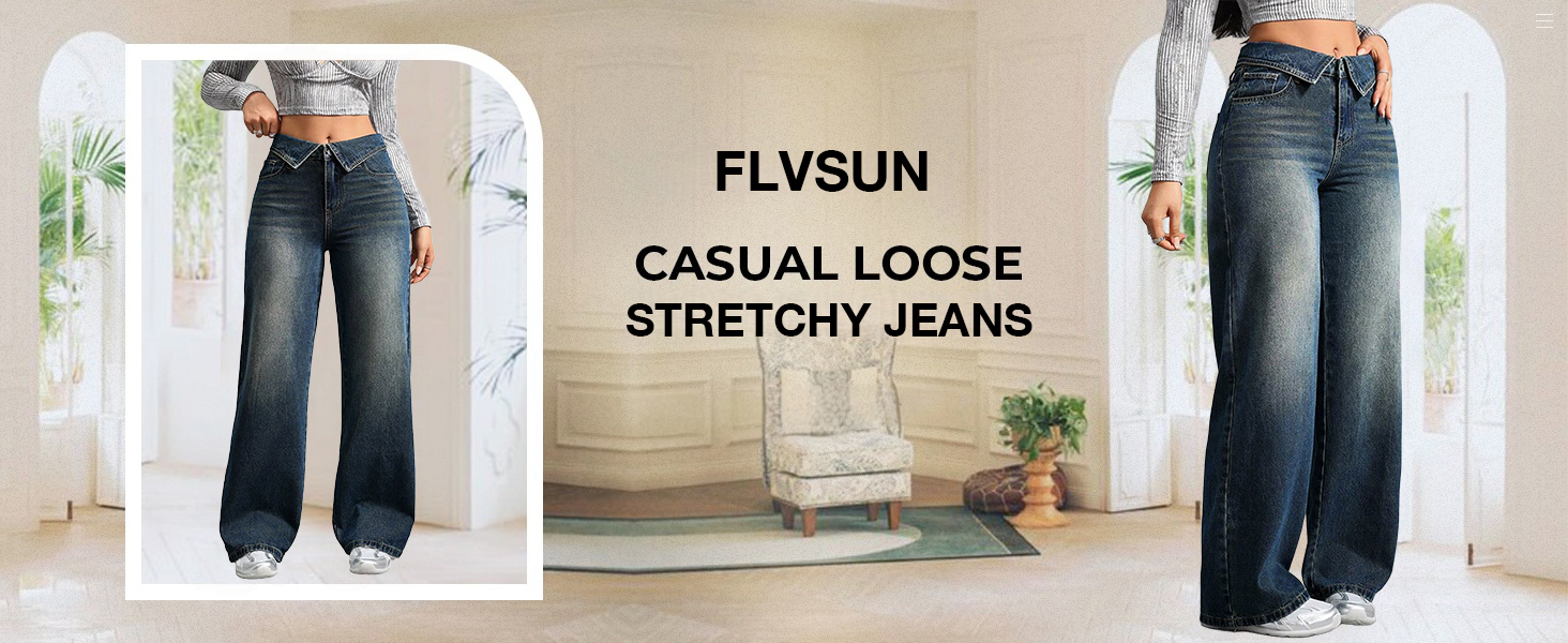 【Size Tips】: Please check the Flvsun size chart before purchasing an order. These wide-leg pants for women are elastic, and the waist circumference can be increased by 2-3 inches. 💥It is recommended to buy jeans for people 5'5''-5'7'' feet tall,if you are not sure about your size, pls buy a smaller size .💥