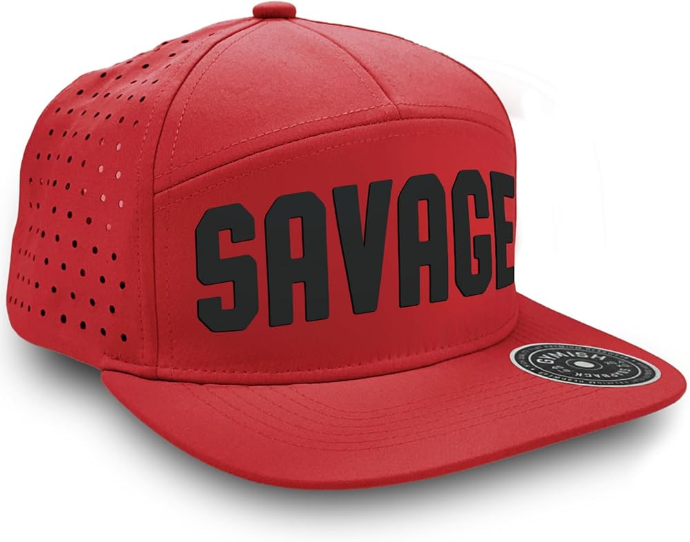 Savage Hats: Revamp your workout attire with our fitness-inspired designs and breathable, comfortable material. With seven sleek panels and stitched details, this cap brings a fresh and trendy look to your outfit.
