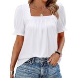 2026 Summer/Spring Essential – Lightweight & Cute Design:This siliteelon women's summer top is made for warm seasons—lightweight fabric keeps you cool on beach days or sunny vacation outings, with a pleated square neck and ruffle puff short sleeves that add girly chic flair. It fits right into casual moments, from grabbing coffee to strolling a garden, and the cute design feels fresh for 2026 trends without being over-the-top