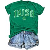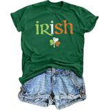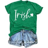【FEATURES】: Irish letter print t-shirt; Green shamrock graphic printed shirt; short sleeve pullover tops; casual loose style; clover graphic tee shirt will make you more attractive and cute; simple letter graphic design for you;