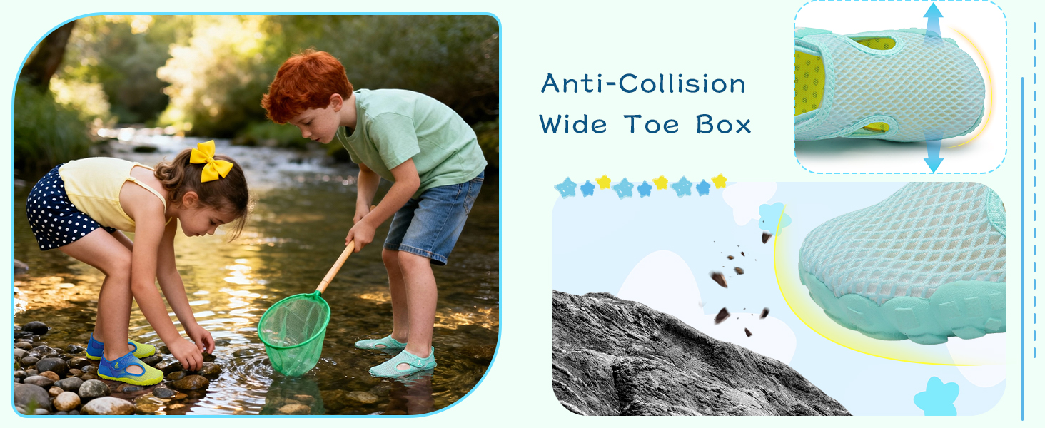 Superior Non-Slip Traction & Safety: The rugged rubber outsole with deep tread patterns and the dotted insole provide excellent grip on wet surfaces like pool decks and slippery rocks. The closed-toe design offers added protection for active kids